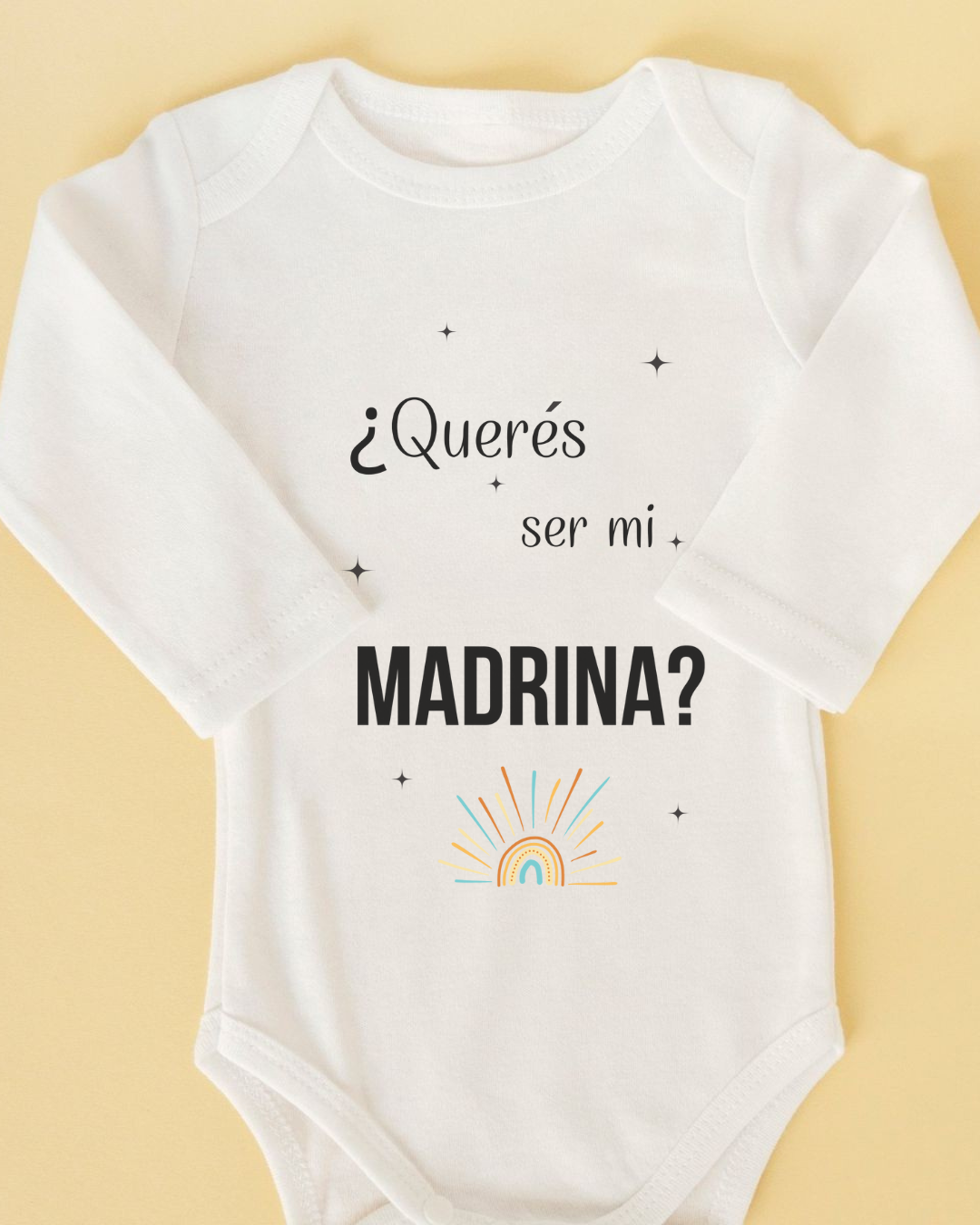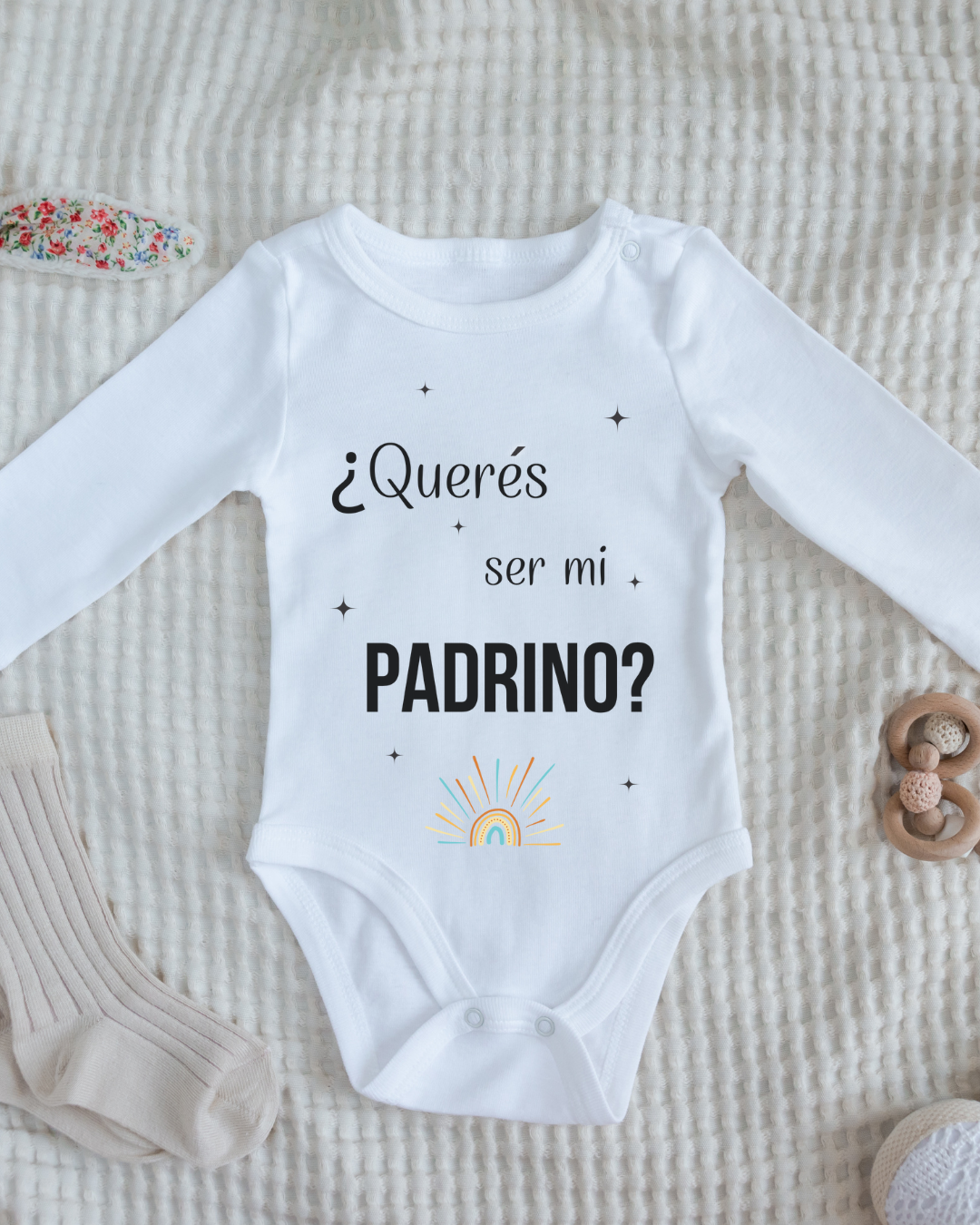 Un regalo lleno de ternura para dar la noticia más especial: ¡van a ser padrinos! Caja sorpresa con body estampado “¿Querés ser mi madrina/padrino?” ✨